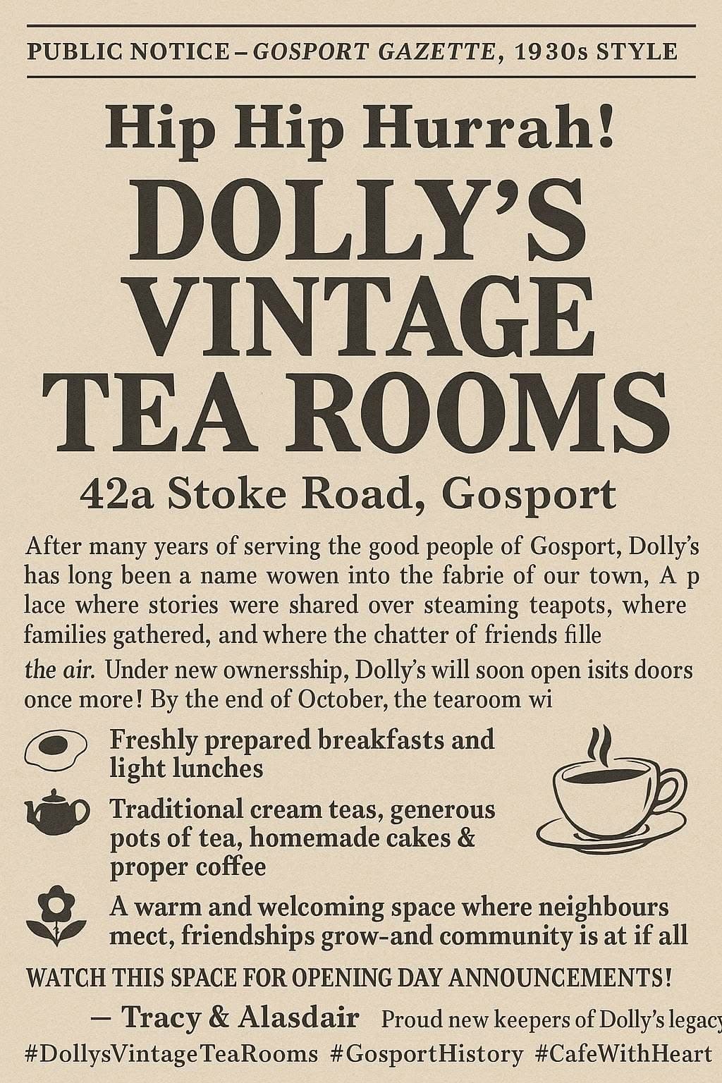 We are so delighted to share that The Dolly’s Vintage Tea Rooms is beginning a brand new chapter under new ownership — and will be reopening by the end of October. The teapots will be warm, the cakes freshly baked, and the tables waiting to welcome you back.